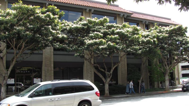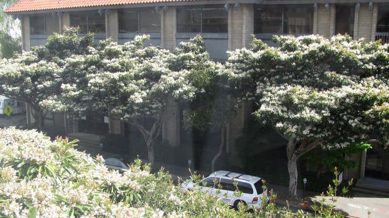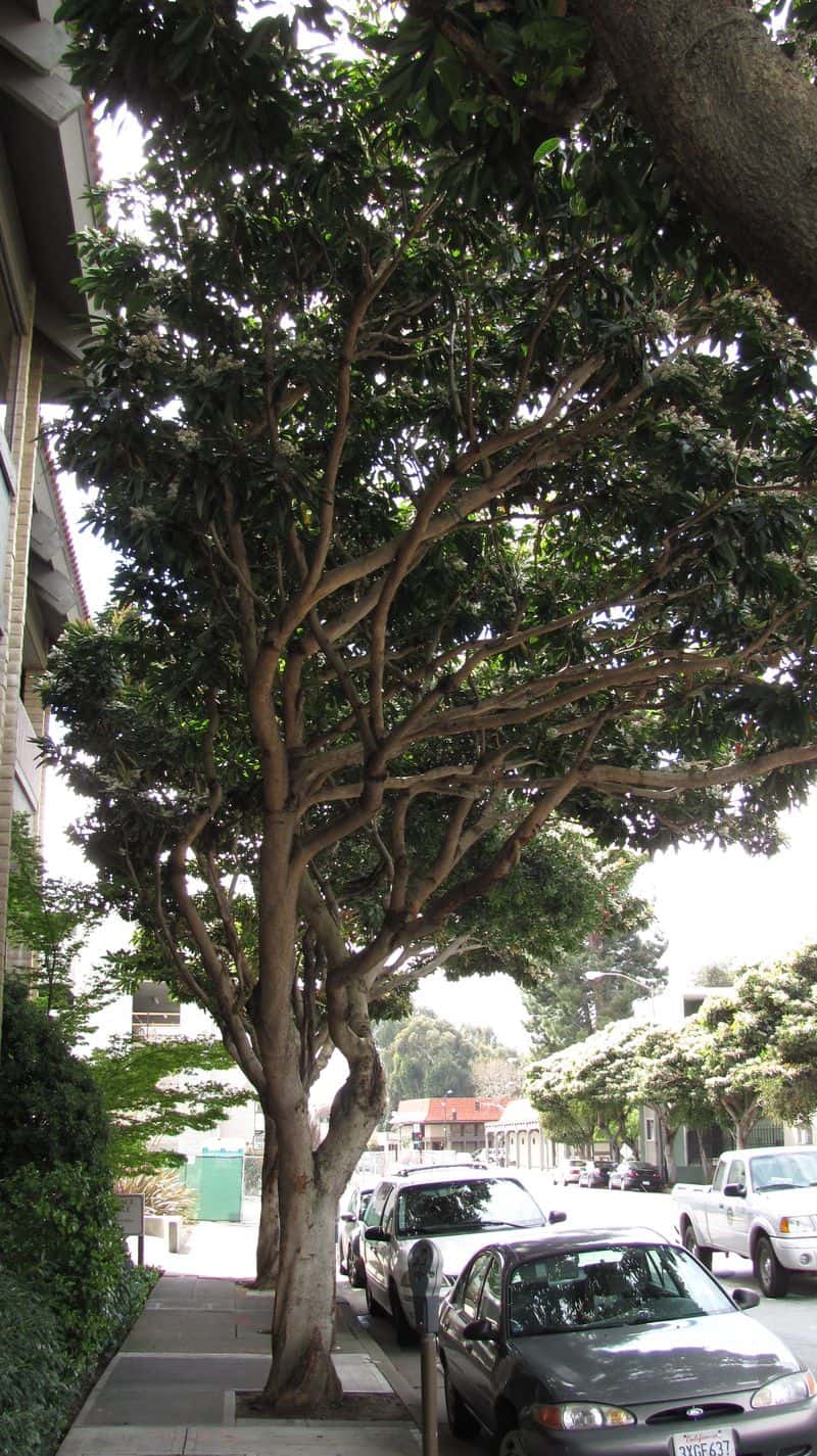Is it a good street tree? You decide. These specimens are about 40 years old. Usually I see this tree as a large shrub, I have even used it as an espalier against a building. This is in San leandro in the east bay area.